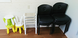 ![]() 左から子供用椅子、背もたれなし椅子、通常の椅子 |